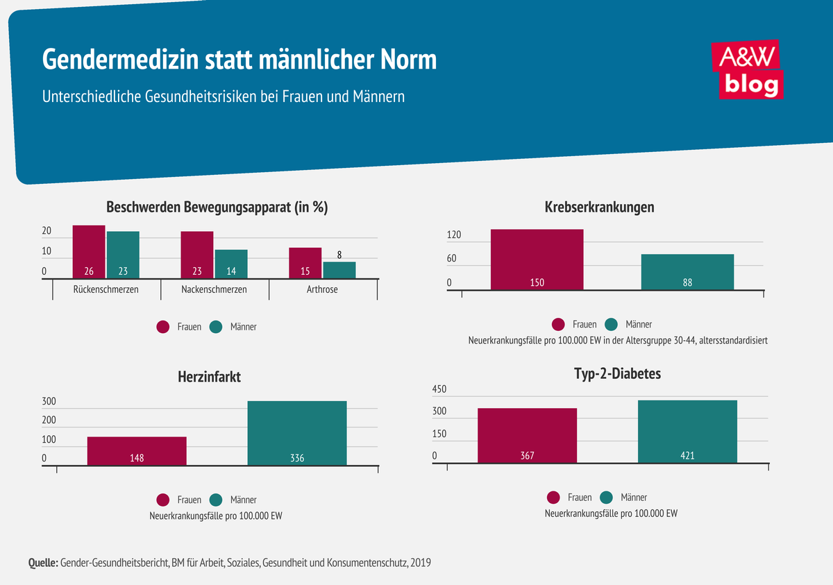 Gendermedizin muss zur Selbstverständlichkeit in der Medizin werden, doch damit das gelingt, müssen Rahmenbedingungen dafür geschaffen und erarbeitet werden. Wissenschaftliche Studien und Forschungsarbeiten müssen geschlechtssensibel gedacht werden, damit entsprechende Ableitungen gezogen werden können und die Ergebnisse für die Gesundheitsversorgung zur Verfügung stehen. Die geschlechtsspezifischen Erkenntnisse müssen dann durch Weiterbildungen und Leitfäden in die Breite des medizinischen Fachpersonals, sowohl im niedergelassenen Bereich als auch in Krankenhäusern, ankommen. Aber auch bei Maßnahmen für mehr Gesundheit im Betrieb, sei es im Bereich des Arbeitnehmer:innenschutzes, der Betrieblichen Gesundheitsförderung oder der Wiedereingliederung nach langer Krankheit braucht es immer auch den scharfen Blick, ob genderspezifische Unterschiede ausreichend berücksichtigt werden.